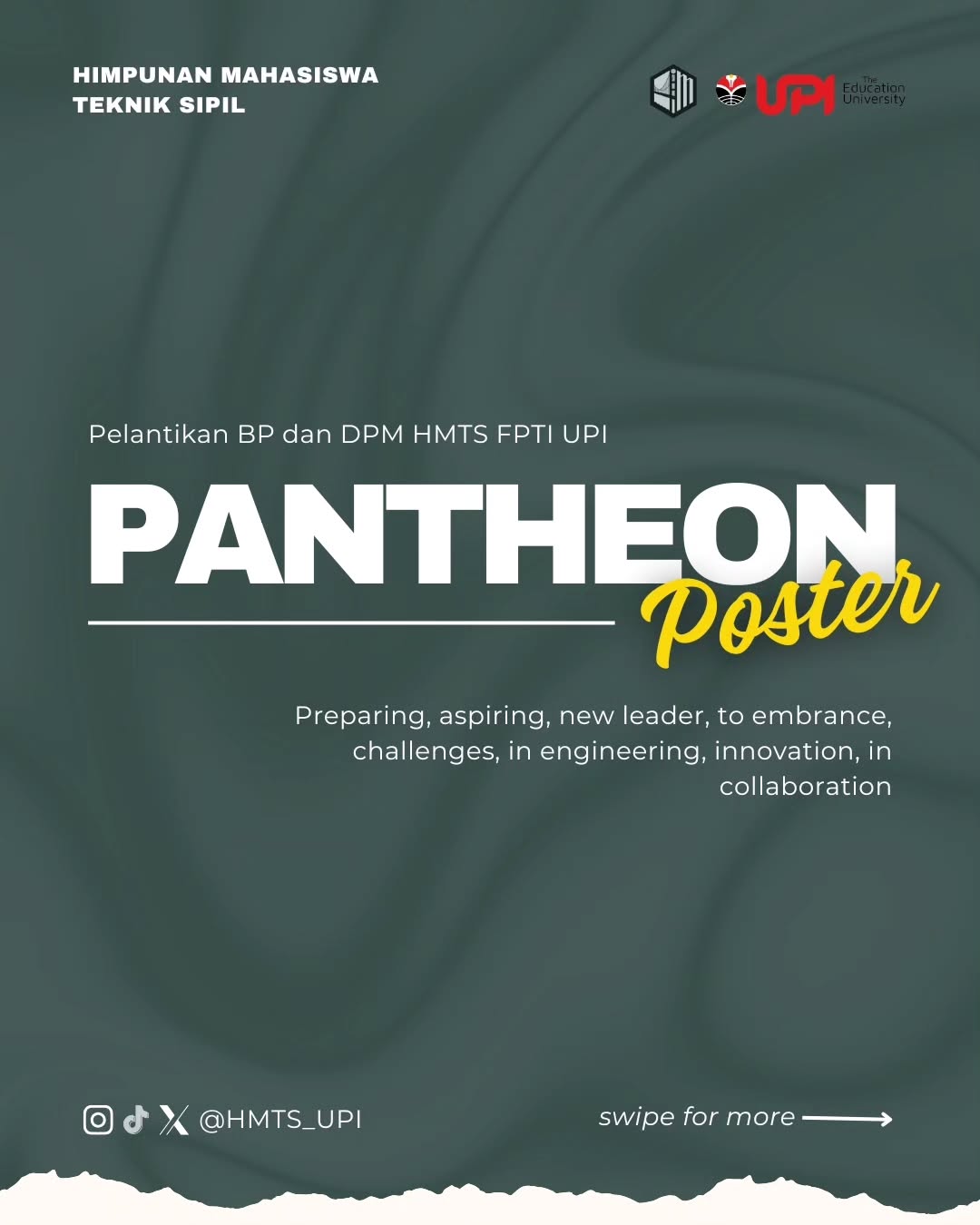 Kami dengan bangga mempersembahkan Pantheon, sebuah acara Pelantikan BP dan DPM HMTS yang menjadi langkah awal dalam perjalanan kepemimpinan baru! Pantheon akan diselenggarakan pada: