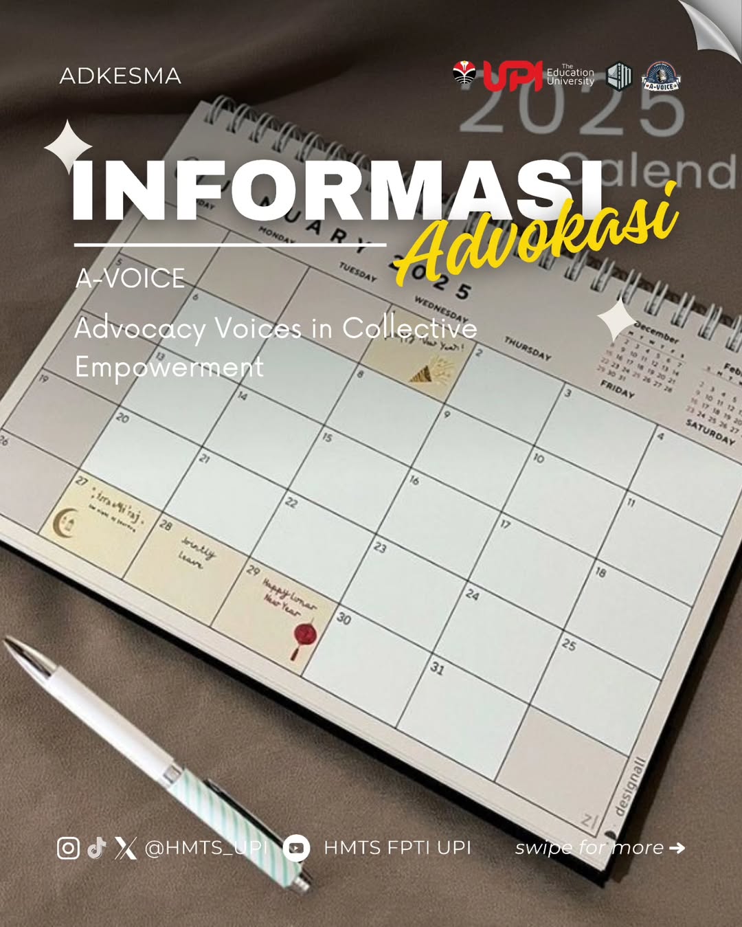 Ada informasi dari Bidang Adkesma HMTS FPTI UPI. Seperti yang kalian ketahui, Bidang Adkesma memiliki penanggungjawab yang dapat teman-teman hubungi sebagai narahubung setiap angkatannya. Teman-teman dapat menanyakan seputar keadvokasian ataupun akademik perkuliahan.